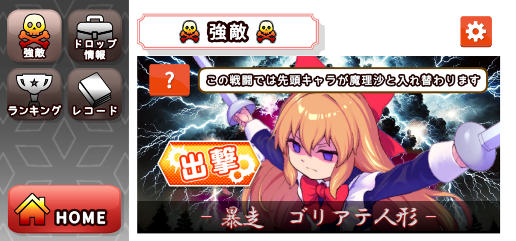 暴走ゴリアテ人形との戦闘では出撃メンバーの先頭が、「超火力魔理沙」に強制的に置き換わります。